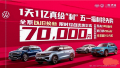 今年開年以來,各大主機廠都推出了不少的優惠政策來拉動汽車消費,還沒買車的消費者真的是有福了,最近這一汽-大眾也出手了,宣布推出“1天1億”全系以舊換新購車活動,覆蓋了旗下燃油車、新能源全系車型,限時綜合優惠至高70,000元,可謂是相當的有吸引力。