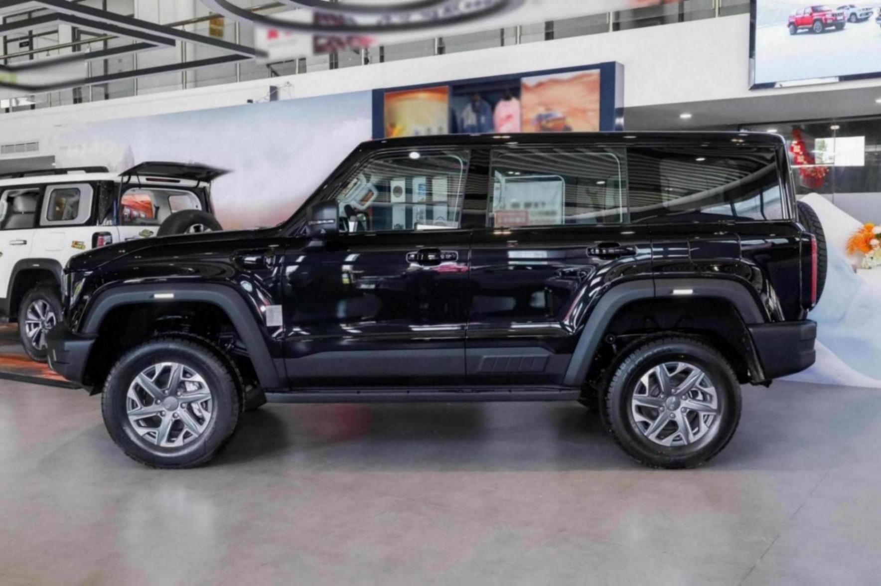 側面線條筆直硬朗,輪眉外擴輪廓突出,突出越野屬性。配備無框車門,車門把手與后側窗都做了熏黑處理,輪轂做了刀鋒造型,相比城市版更時尚酷炫。此外,頂蓋、前后杠、輪眉支持快拆功能,便于改裝。