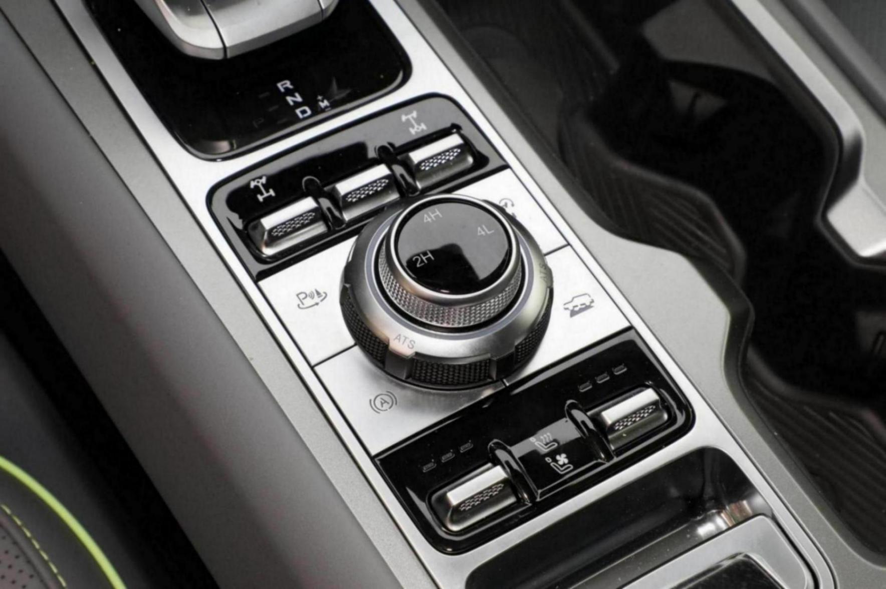 整個內飾風格偏柔軟舒適,軟質材質覆蓋面積較大,但布局依然繼承了硬派SUV風格,例如,橫向一字型中控臺、大尺寸方向盤、立體式空調出風口、多個實體按鍵等。配備兩塊12.8英寸的中控與副駕屏,扶手區域檔桿尺寸較小,儲物空間較大。