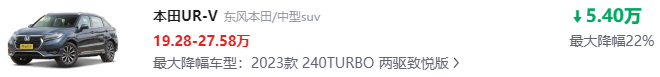 本田URV此前在市場當中還具備一定優勢,至少每個月還能夠做到,2,000臺至3,000臺銷量之間,而如今只剩下幾百臺銷量。在市場當中它的保值率確實比較強,三年保率71%左右,目前現款車型官方售價24.68萬至32.98萬,而且低配的版本車型還是1.5T版,因此這款車在之前可選擇性方面并不是特別高,現在給出5.4萬優惠,1.5T版本車型已經殺到19萬,性價比那么可選擇性可看性就高了。