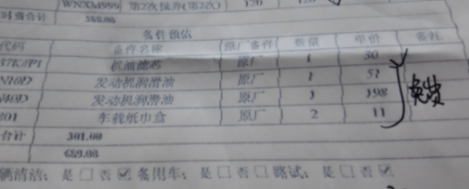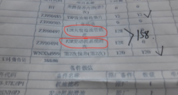 4S店的工作人員 一開始就搞錯了。打印出單子來一看。 里面包含了天窗清洗和發動機清洗,這兩個加起來158元。價格是不貴,但我的車是最低配,沒有天窗, 所以這個天窗清洗它就不對了。后來4S店的工作人員發現了之后,就給我改成了空調清洗。