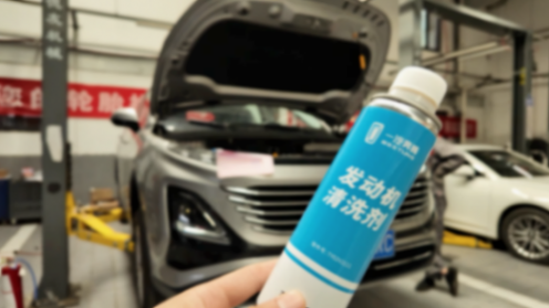 然后車輛進入到車間里去,先是把一瓶叫做發動機清洗劑的東西,倒入發動機。工作人員說是除積炭的。