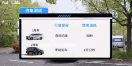 對比結果如上,本以為自動泊車這種功能對于傳統車企來是個挑戰,沒想到傳祺 E9 宗師版自動泊車速度比手動泊車速度還要快一些,確實有些刮目相看了。