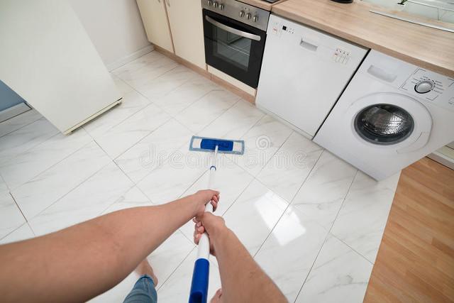 4、廚房的地板屯積油垢,拖不干凈怎么辦?