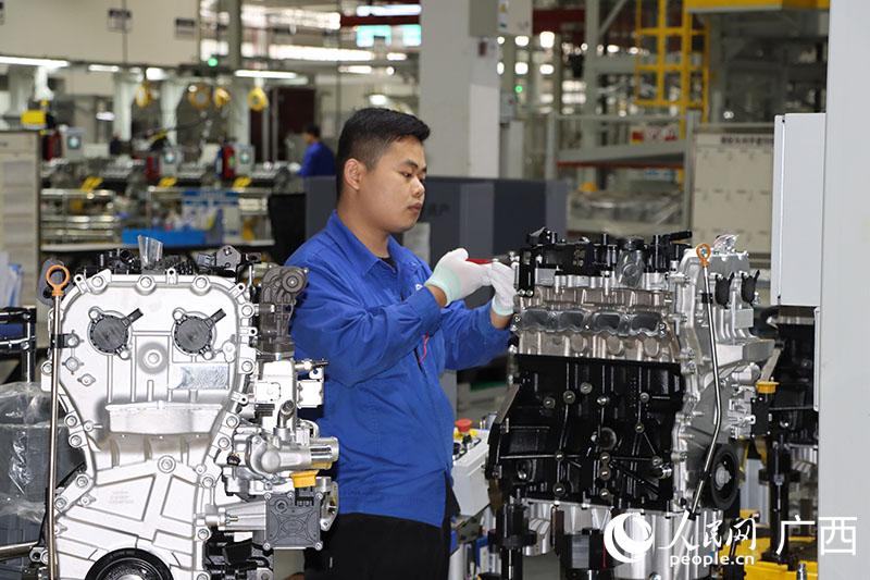 上汽通用五菱靈犀動力1.5T混動發動機量產啟動儀式。人民網 付華周攝