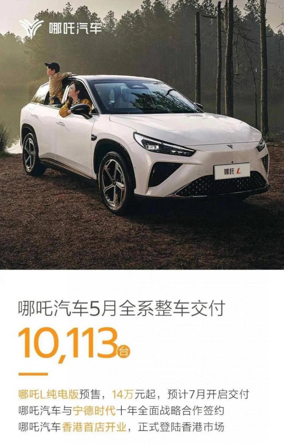 哪吒汽車5月全系整車交付10,113臺,相較于上月數據有所提升。目前哪吒L「紅衣版」車型銷量火爆,但產能有些跟不上,因此交付數量尚未有所突破。