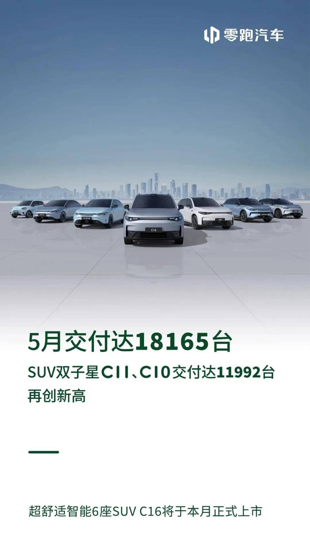 5月,零跑汽車交付量達18,165臺,其中零跑C11、C10交付達11,992臺。5月14日,零跑國際正式組建完成,零跑汽車有望將于2024年9月首先在歐洲開啟銷售。