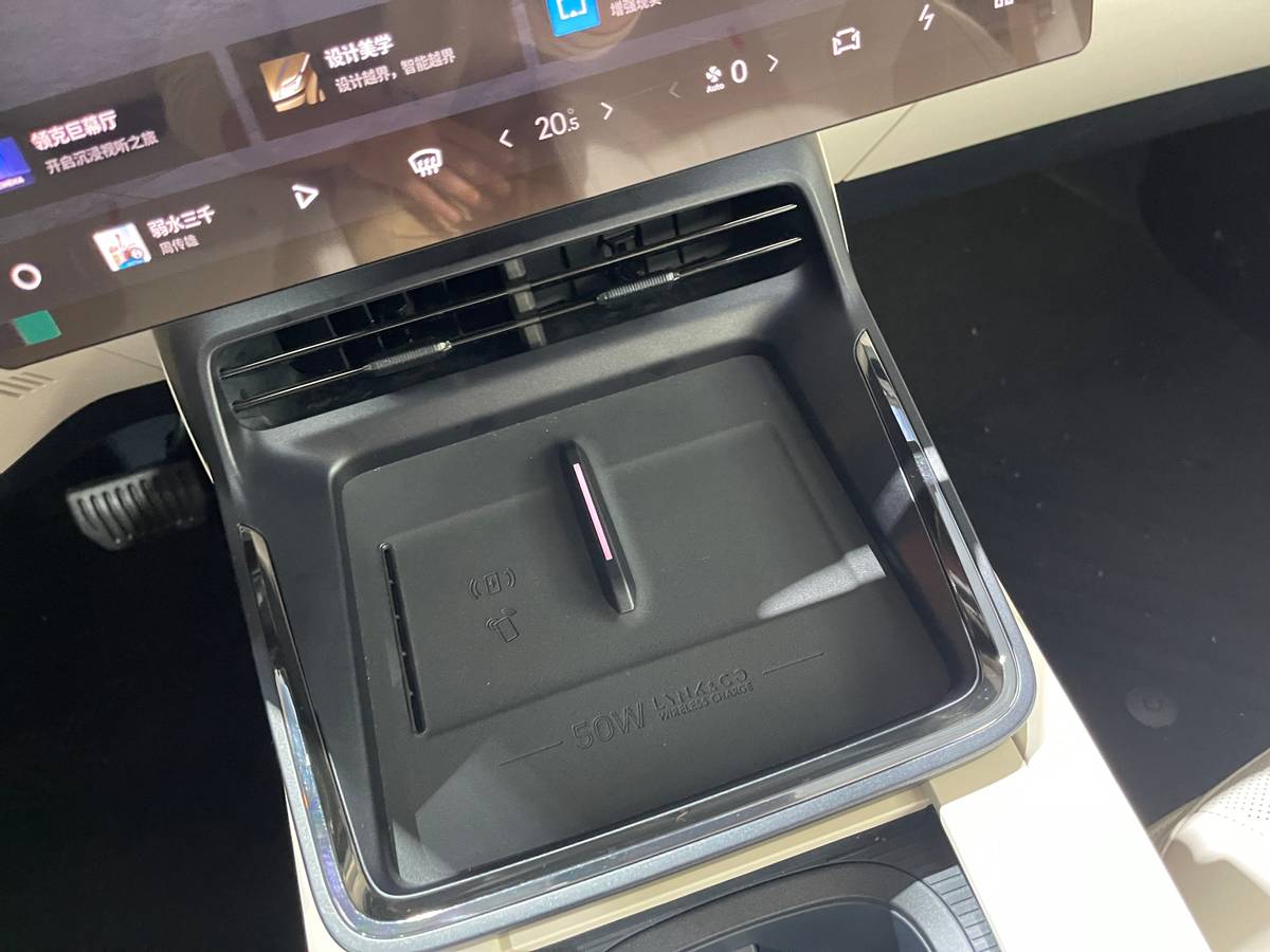 在中控屏幕的下方,它也會加入無線手機充電面板,它的功率可以達到50W。中央扶手區域的空間也是比較大的,放置4瓶水或6瓶水也是非常輕松。并且,其內部會有2個Type-C的接口,其中一個接口的充電功率可以達到60W。