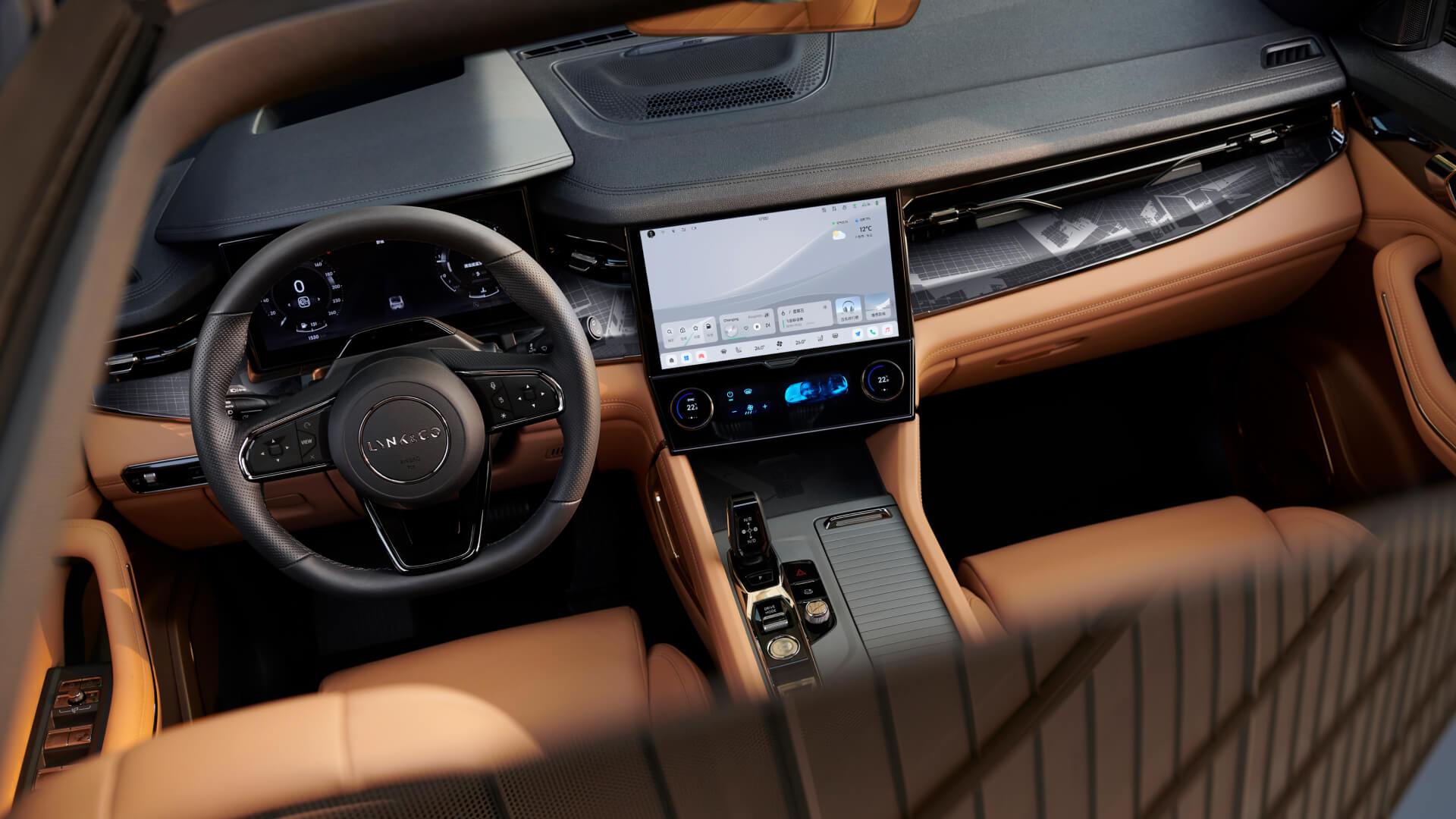 領克09四驅全球版在內飾方面,有著不錯的氛圍感和質感,內飾由棕色和黑色組成,中控臺采用傾斜式設計,更加有利于駕駛員觀感,全液晶儀表的尺寸為12.3英寸,中控屏幕的尺寸為12英寸,四驅全球版的整體配置比較豐富,完全可以滿足日常使用。