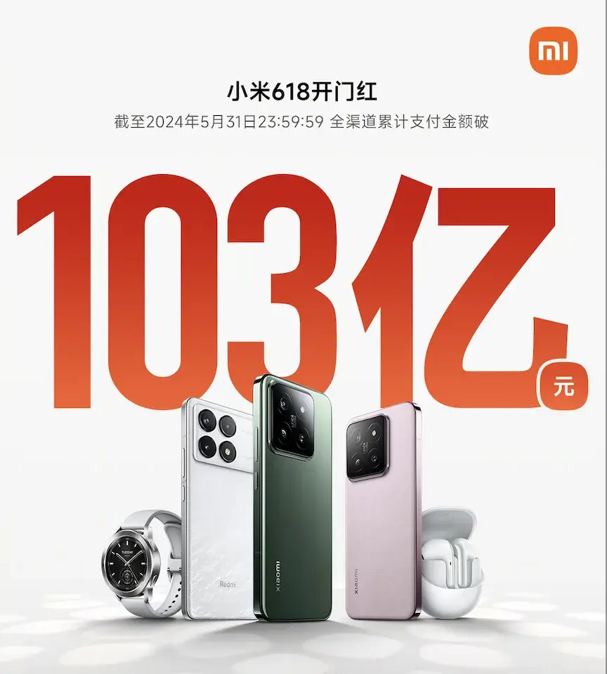 5月20日,小米宣布正式啟動2024年618大促活動。在這場618大促活動中,小米拿出了十足的誠意,這使得許多人紛紛路轉粉。整個618開門紅,小米首日摘國產手機品牌累計銷量與銷額雙第一,全產品支付金額破103億。不出意外的話,小米很可能又要打破618的記錄。