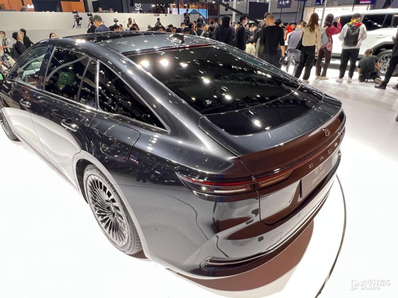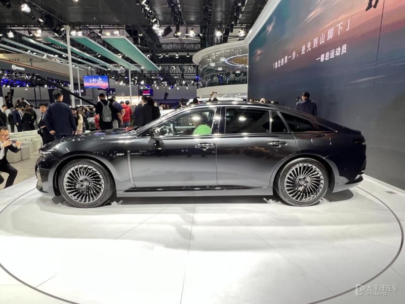 車身側面,新車車身顯得十分修長順滑。車身尺寸方面,新車的長寬高分別為4930/1840/1540毫米,軸距為2850毫米。新車的車尾采用; 溜背式設計,并擁有當下十分流行的LED貫穿式尾燈。車燈下方還鑲嵌有字母標識,體現尊貴感。