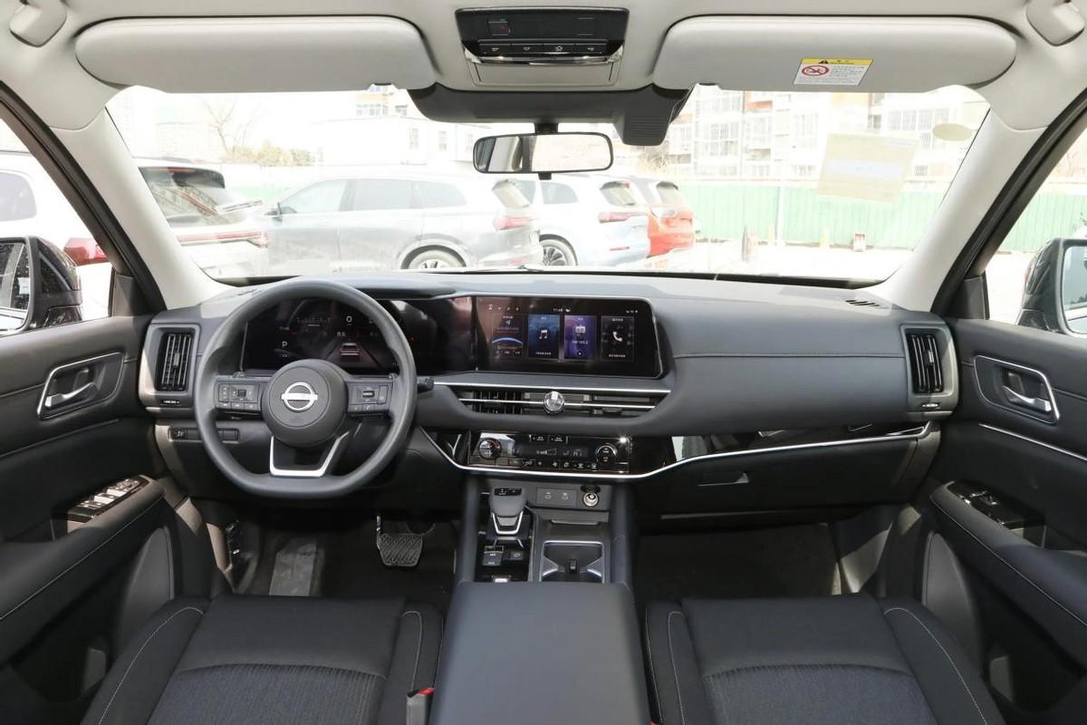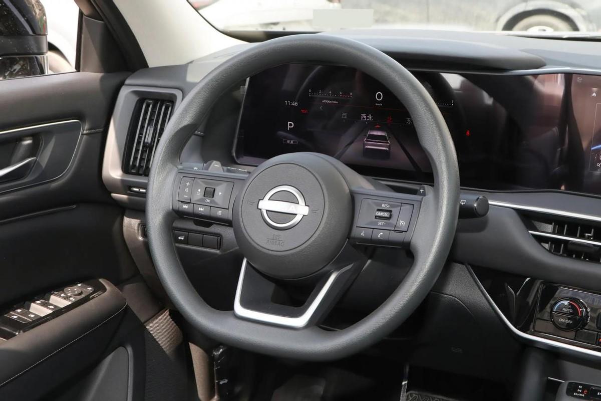 座艙區(qū)域,日產探陸則是使用了環(huán)抱式設計,儀表和中控屏呈現(xiàn)出雙聯(lián)屏的視覺效果,方向盤則是三輻式平底效果。車內用料方面,多數(shù)區(qū)域還是軟性搪塑材質,方向盤為皮質材質,座椅則是以織物面料為主。