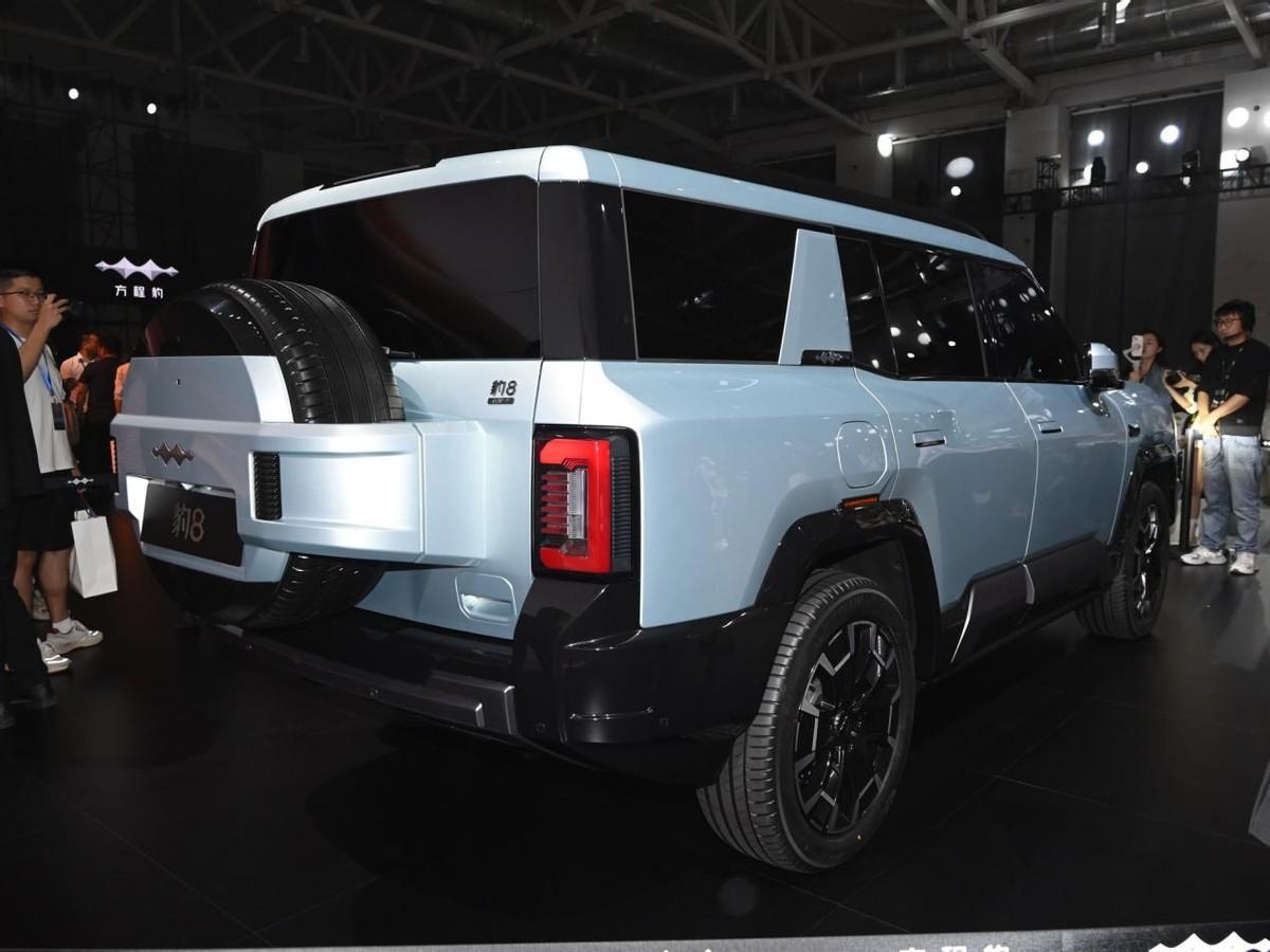 而方程豹豹8,也是這種風格,不過豹8作為一款新能源汽車,在前臉設計上更加年輕化,采用了貫穿式的燈帶以及雙C型大燈,同樣也有著比較強的吸引力。