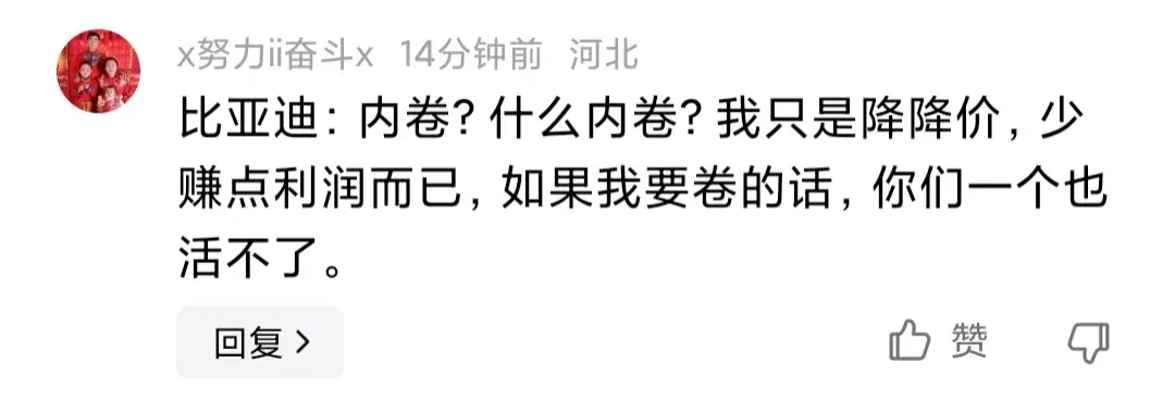 企業確實要有利潤。但他沒搞明白的是,卷價格的底氣是技術。通過技術革新把成本降下來了,為什么不能降價呢?我們反對的是虧本降價打價格戰的惡意攪亂市場行為,但通過技術革新降低成本而讓利于民的做法,我們應該支持。
