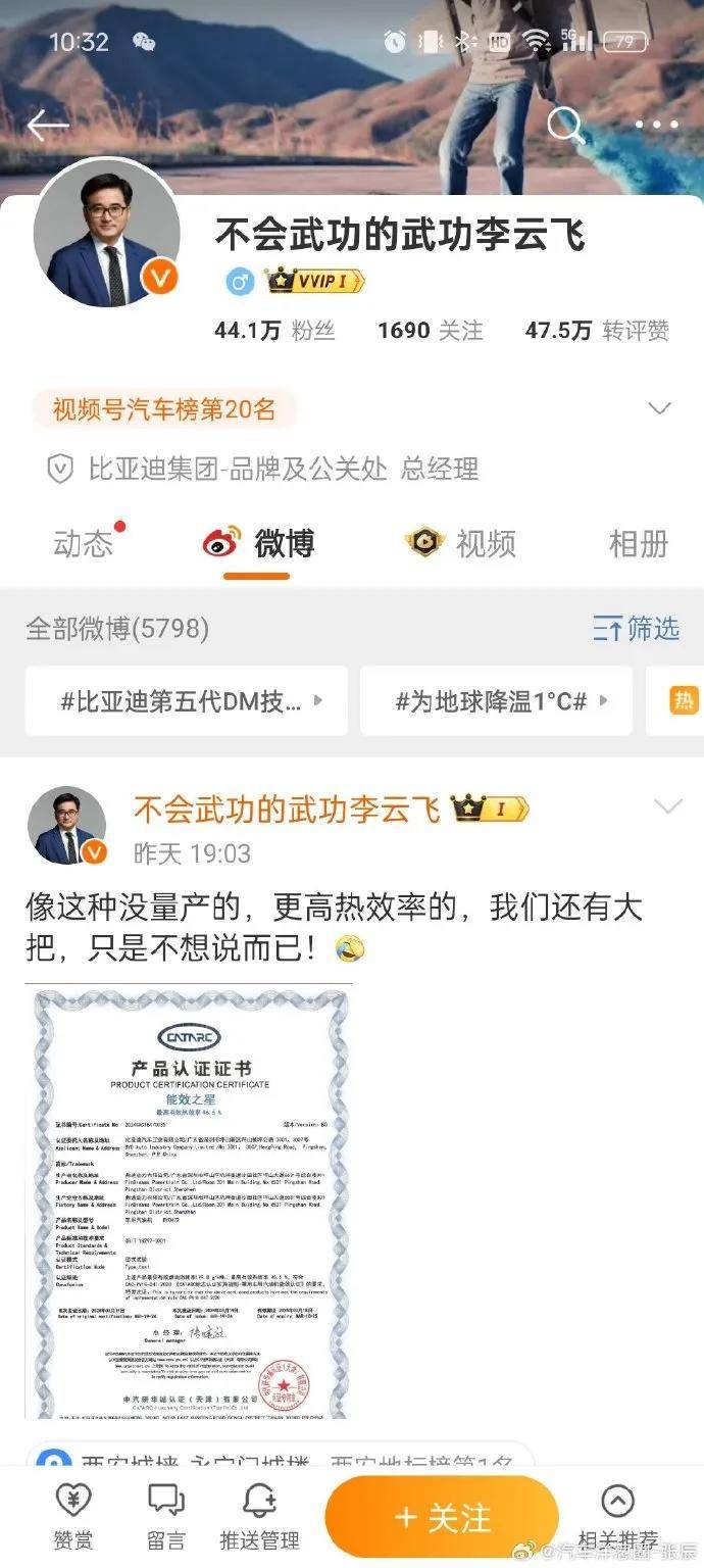 比亞迪一聽(tīng)豈有此理,反手就又是一張熱效率更高的、達(dá)到46.5%的中汽研認(rèn)證證書(shū),說(shuō)你那是未量產(chǎn)的,要比這個(gè)我這兒有的是存貨。