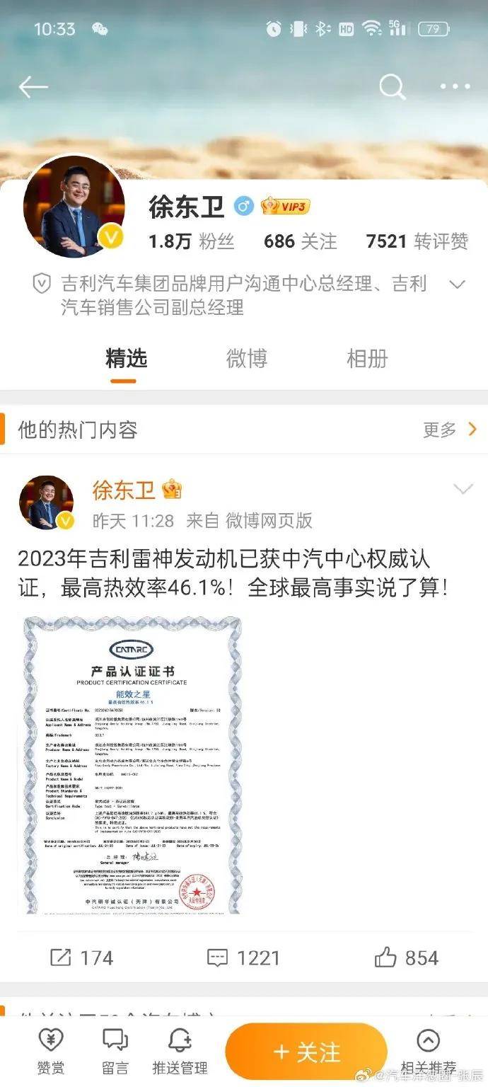 吉利聽(tīng)了以后很不服氣,伸手就甩出一張中汽研認(rèn)證的擁有46.1%熱效率的發(fā)動(dòng)機(jī)證書(shū),表示how dare you在關(guān)公門(mén)前耍大刀。