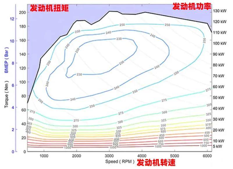 還有一個(gè)藍(lán)色的豎坐標(biāo)軸,叫BMEP(平均有效壓力)。不過(guò)你也不需要知道它是啥,總之?dāng)?shù)值越高就越好。