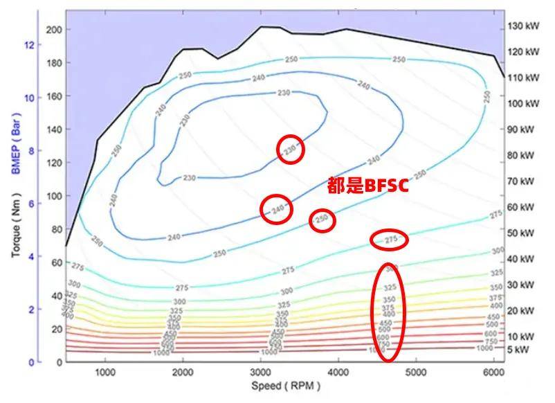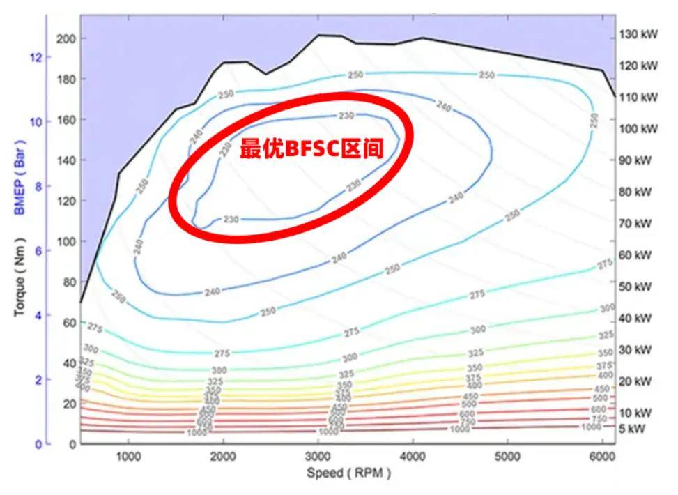 而B(niǎo)FSC的數(shù)值越低,在輸出相同的動(dòng)力下,汽油消耗越低,也就是越省油。