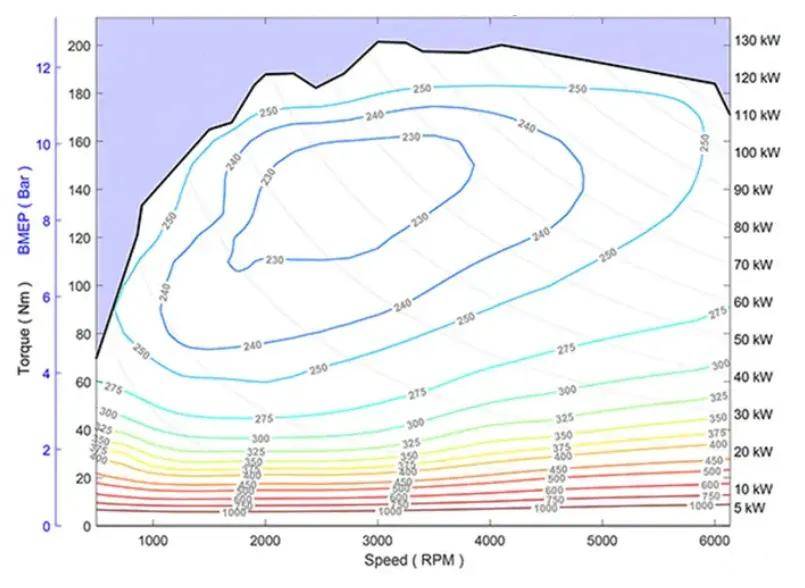 好了,現(xiàn)在再來(lái)給大家講下這個(gè)BFSC,它的意思就是發(fā)動(dòng)機(jī)平均每輸出1千瓦的動(dòng)力,需要消耗多少克汽油。