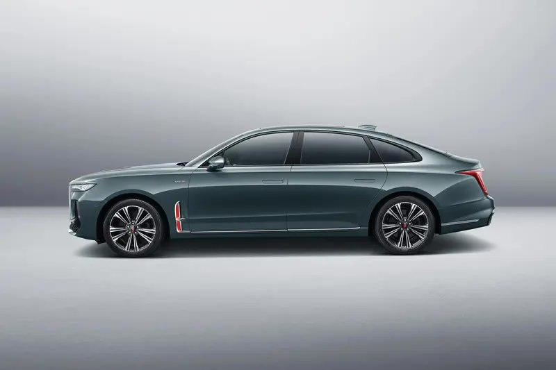 車身側(cè)面,新款紅旗 H9 前翼子板上的旌旗式裝飾條提供紅色樣式。車身尺寸方面,新車的長寬高分別為 5137/1904/1498mm,軸距達(dá)到 3060mm。