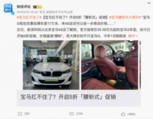 近期#寶馬腰斬式大降價#的話題,在各社交平臺登上熱搜,在該話題中有各路博主、號稱寶馬4S店銷售人員現身說法: