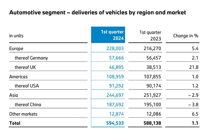 •寶馬集團2024年一季度營收366.14億歐元,同比下降0.6%;