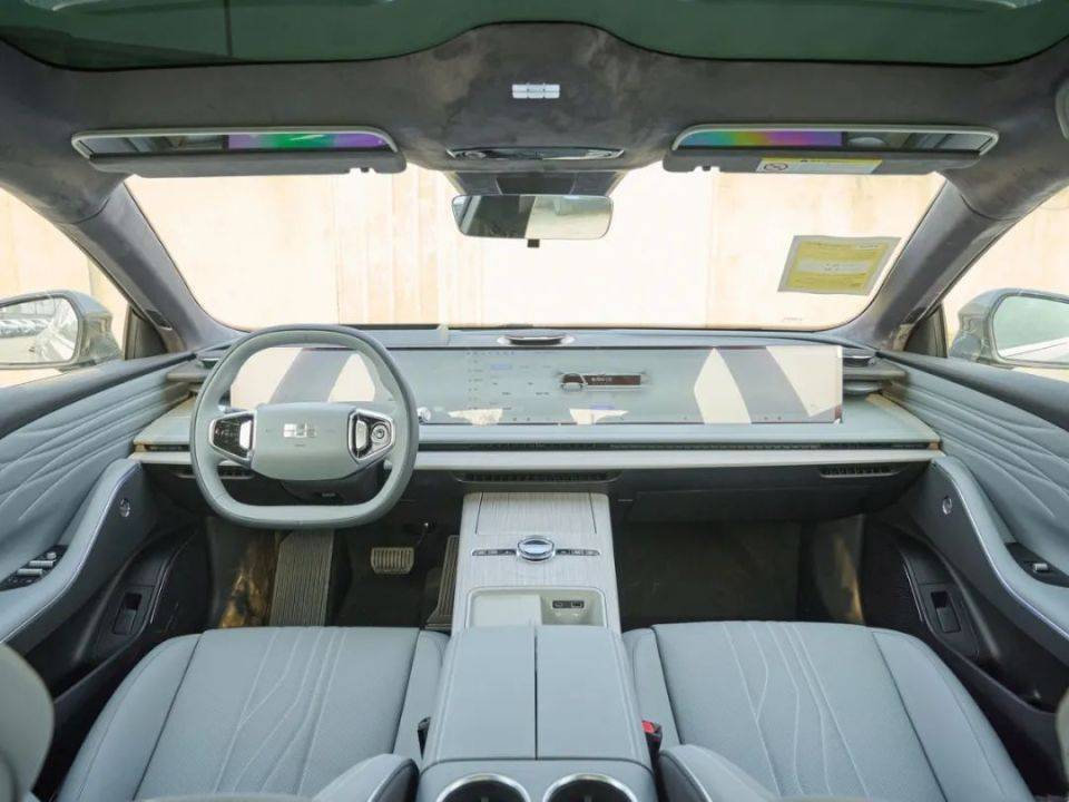 內飾方面,極氪007相當大氣簡約,提供藍白和灰黑兩種配色,配備35.5英寸AR-HUD抬頭顯示系統、全液晶儀表、15.05英寸2.5K OLED中控屏幕,內置8295的車機芯片,搭載語音助手EVA,車機體驗感智能流暢。