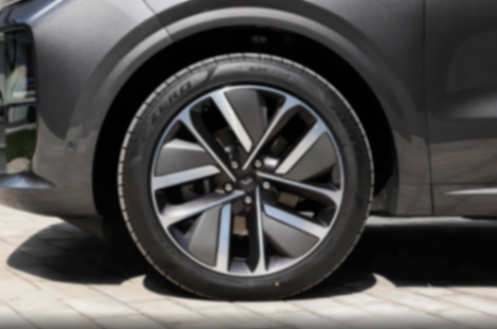 來到車身側面,理想L6尺寸顯然是比L7、L8這些車型縮小了,官方公布數據為4925*1960*1735mm的長寬高和2920mm軸距,雖然說在中大型SUV市場不算差,但無論是價格還是大五座的布局,都明顯是奔著中型SUV市場而來。不過尺寸縮小也讓整車顯得更緊湊,因此運動感得到提升,縮短前后懸搭配傾斜角度更大的D柱,還有標配20英寸雙色鋁合金輪轂,年輕消費者依舊是很容易接受這種搭配。