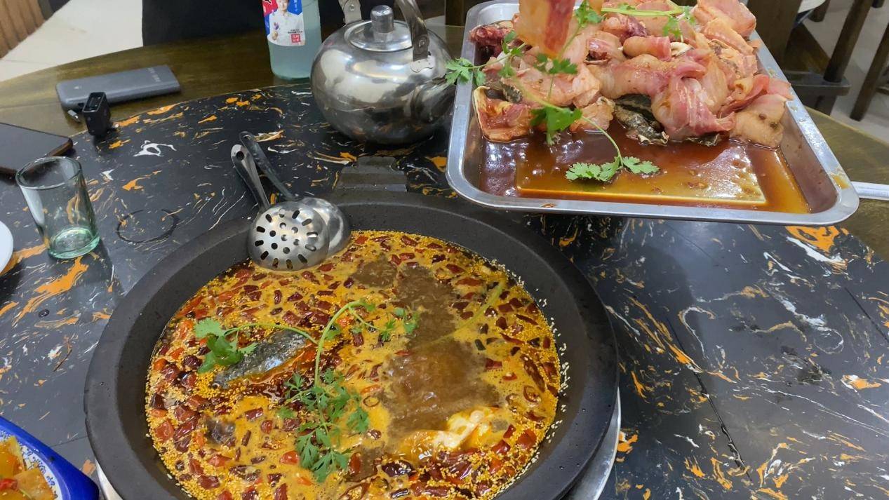 欣賞完石泉美景后,石泉當(dāng)?shù)氐拿朗钞?dāng)然也不容錯(cuò)過(guò)。石泉石鍋魚(yú)是當(dāng)?shù)乇卮蚩ǖ拿朗?,在下鍋之前廚師會(huì)先將鮮活的花鰱現(xiàn)殺,去鱗鰓內(nèi)臟,去頭、去骨,剁成3—5厘米的小塊。魚(yú)頭對(duì)稱(chēng)地剁成兩塊。然后再將熬制好的高湯倒入石鍋中。湘菜一直以辣為特色,而石鍋魚(yú)便也不例外,那紅彤彤的辣椒,配合上翻滾油泡的高湯,濃郁的香辣交織著魚(yú)肉的細(xì)甜,口感十分過(guò)癮。