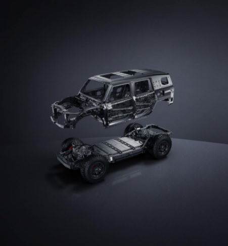 猛士平臺MORA是中國首個自主非承載式豪華電動越野平臺,采用非承載式車身結構,車架高強度鋼覆蓋率達85%以上,采用超高強鋼內高壓一體成型縱梁,帶來行業領先的強度與抗彎、抗扭性能。