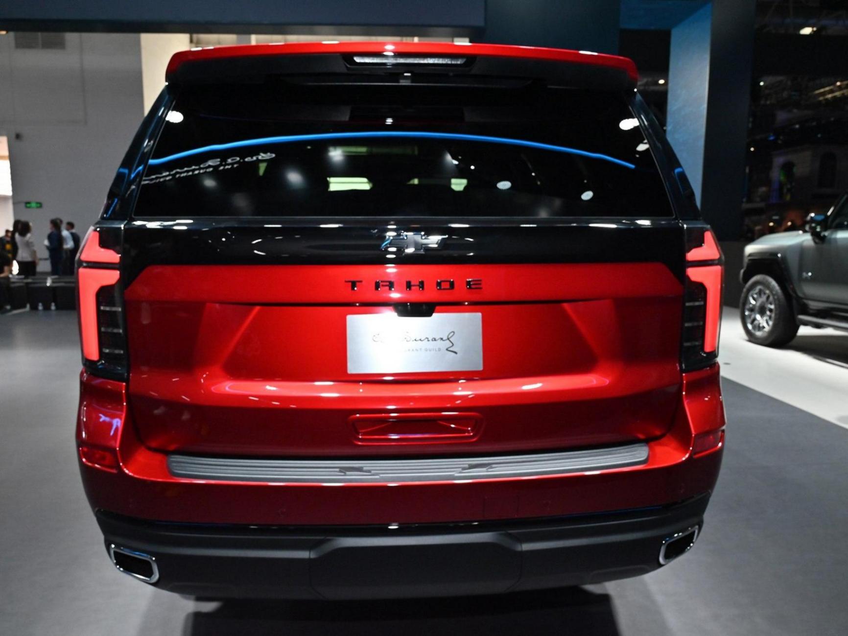 車身側面標準的美系全尺寸SUV正是消費者想要的風格,巨大的車身,修長的腰線和窗線粗壯的前置C柱,隱藏式D柱樣式都不會缺席,車門下方鑲嵌有TAHOE車標,符合雪佛蘭的家族風格,A柱下方還有著特殊裝飾提升了檔次感。車身尺寸達到5382/2050/1940毫米,已經足夠的巨大,走到哪里都是道路上的焦點。在車尾部分,尾燈采用了縱向的結構,有著細膩的紅色燈帶包裹,灰色的燈組的造型,中央有黑色裝飾條相連。