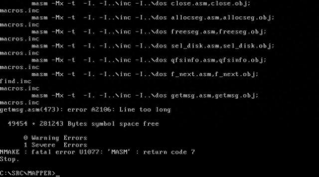 內卡塞克表示 MS-DOS 4.0 本身無法解析 UTF-8,MASM 的字節行長度限制為 512 字節,而轉換為 UTF-8 會讓特定文件超出限制,導致無法被讀取。