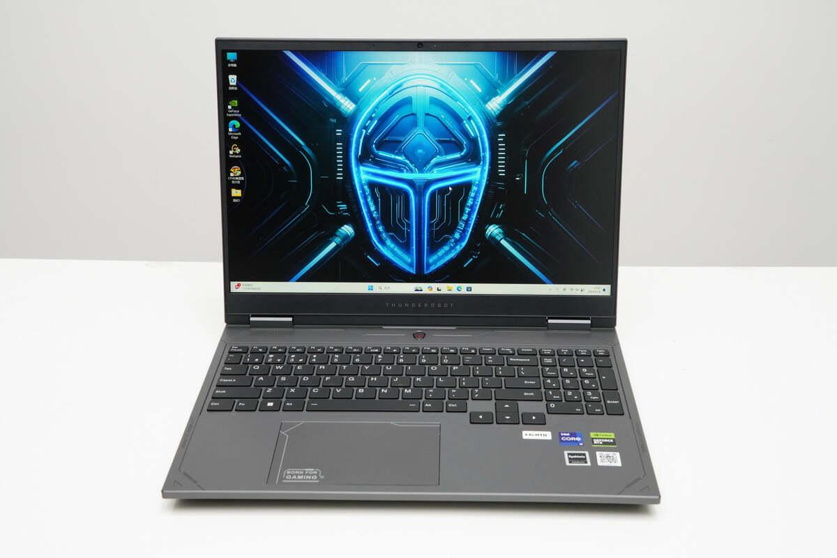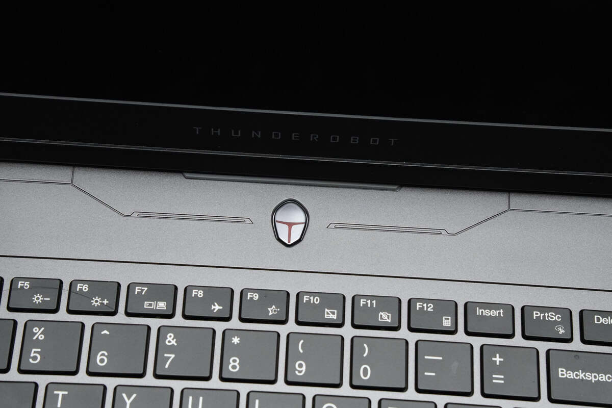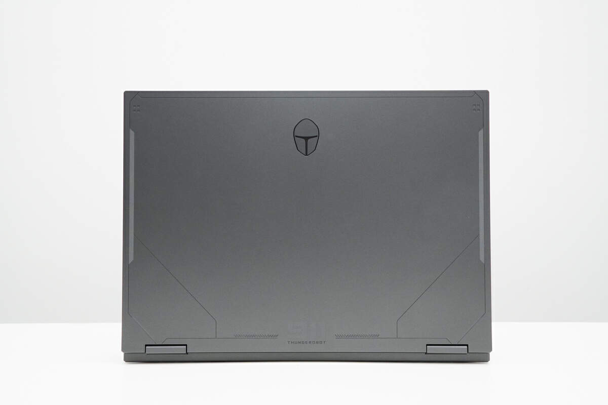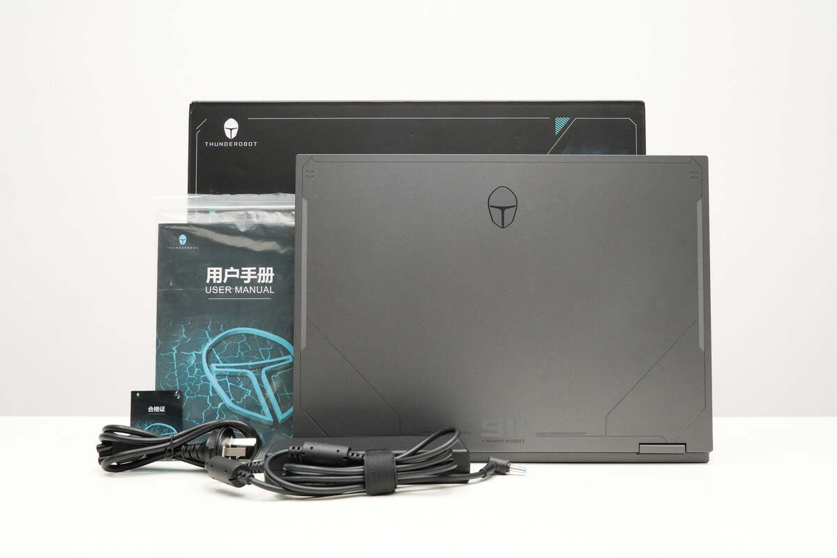 B面頂部位為攝像頭;擁有一塊16英寸的2560*1600分辨率屏幕,支持240Hz刷新率、500nit亮度、100% sRGB色域,兩邊較窄上下邊框略寬,屏幕底部為 THUNDEROBOT 品牌英文標識。