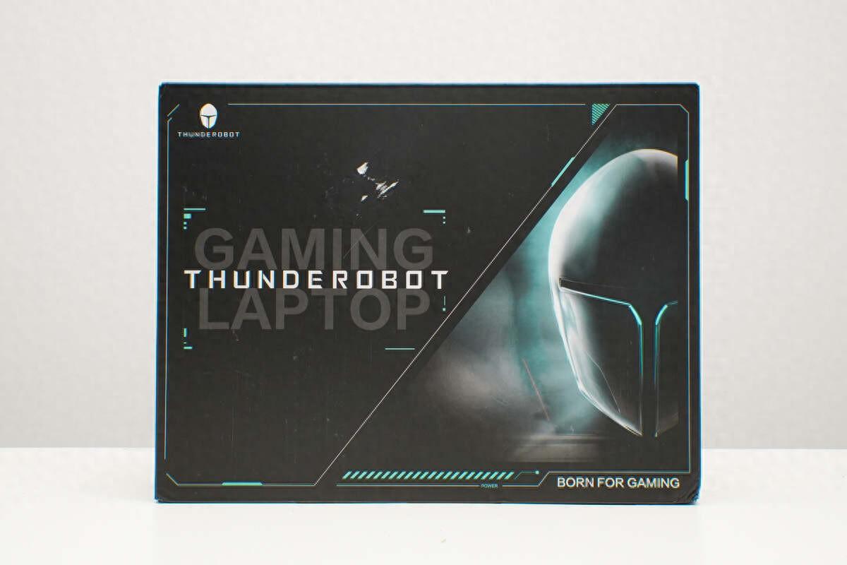 包裝盒上便采用了濃濃的機甲賽博風格設計,以深邃的黑色為背景,左上角為雷神的LOGO及THUNDEROBOT品牌名稱,下方絲印“GAMING LAPTOP”清晰地呈現其游戲本的定位,右側則是大面積雷神標志性的品牌形象。