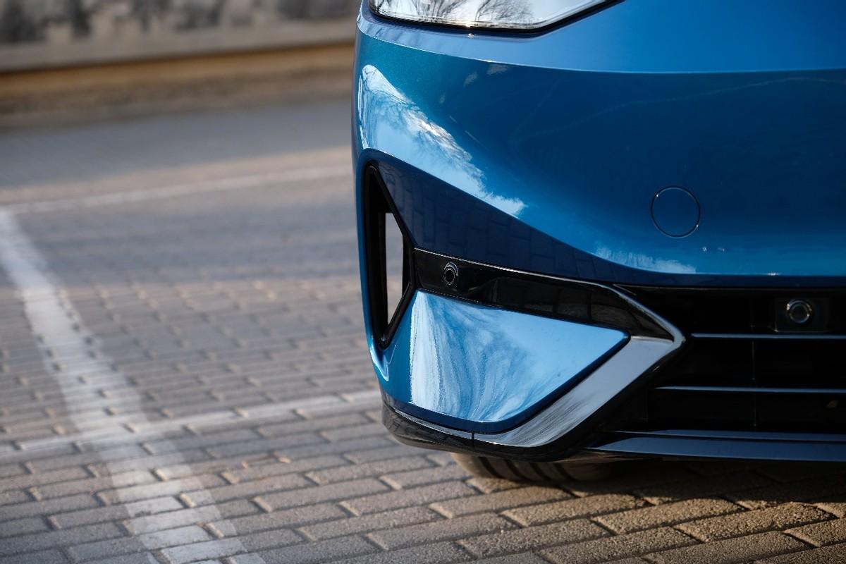 前包圍的兩側,還預留了導風口,便于梳理車頭處的亂流,同時也增加了一絲運動屬性,細節上的處理的確能給人帶來一些意想不到的驚喜。車頭下方區域,為前置雷達和ACC全速自適應巡航雷達模塊,這臺車具備L2級輔助駕駛功能。