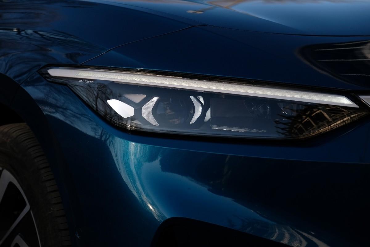 細長條狀燈組看上去犀利感十足,IQ.Light全LED矩陣式大燈已經成為大眾車型時下主流配置,ID.7 VIZZION身上的這顆頭燈,內部由18顆LED燈源組成,照明亮度可以達到900流明,充分保障了夜晚行車時的光照亮點及安全性。