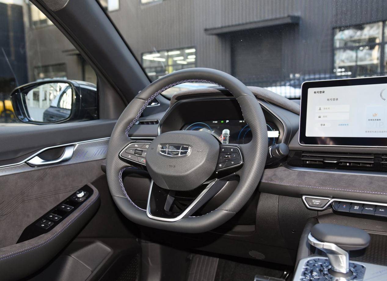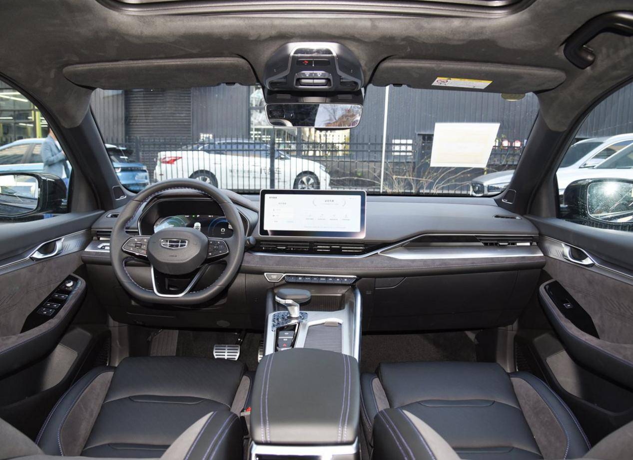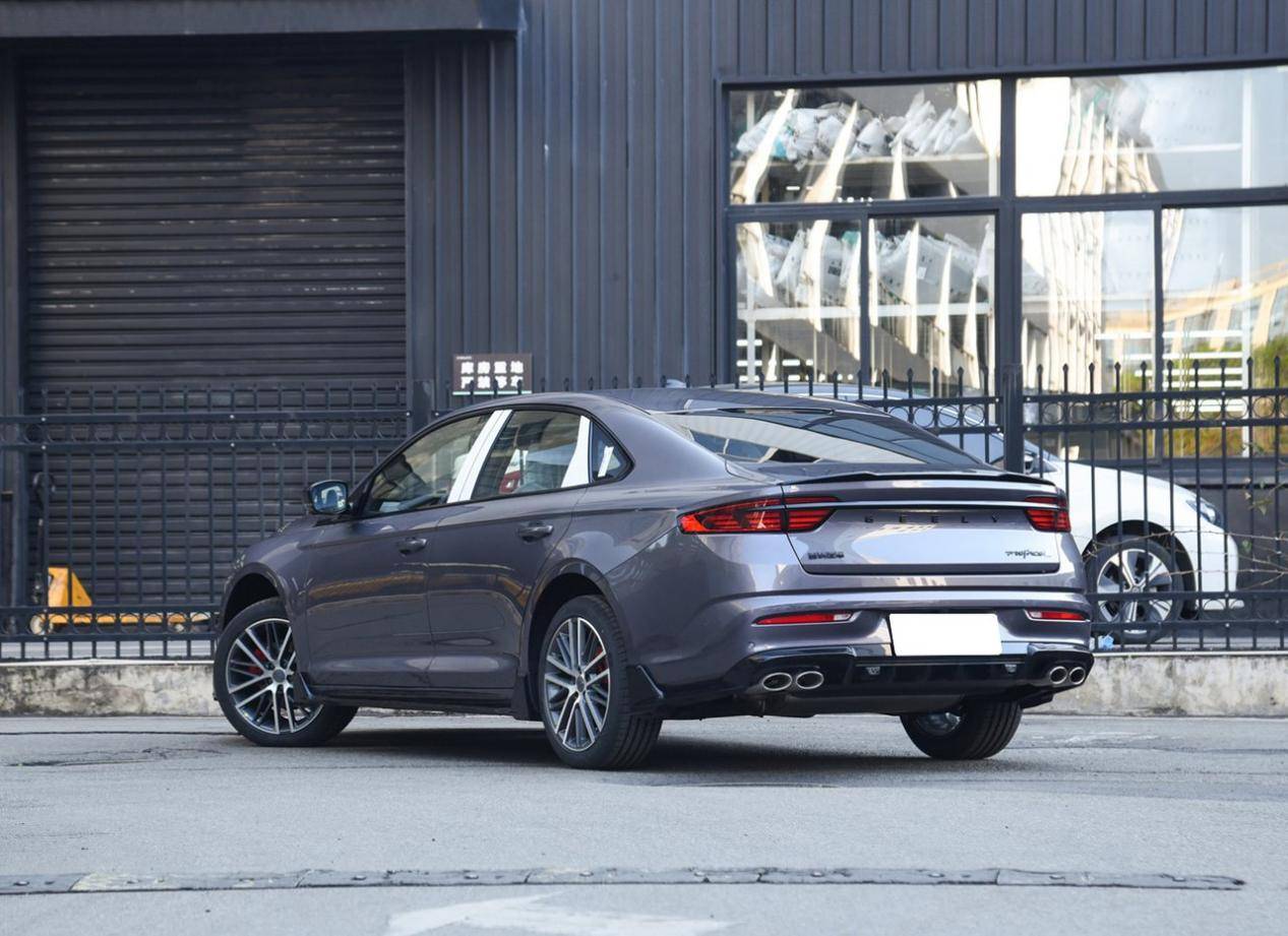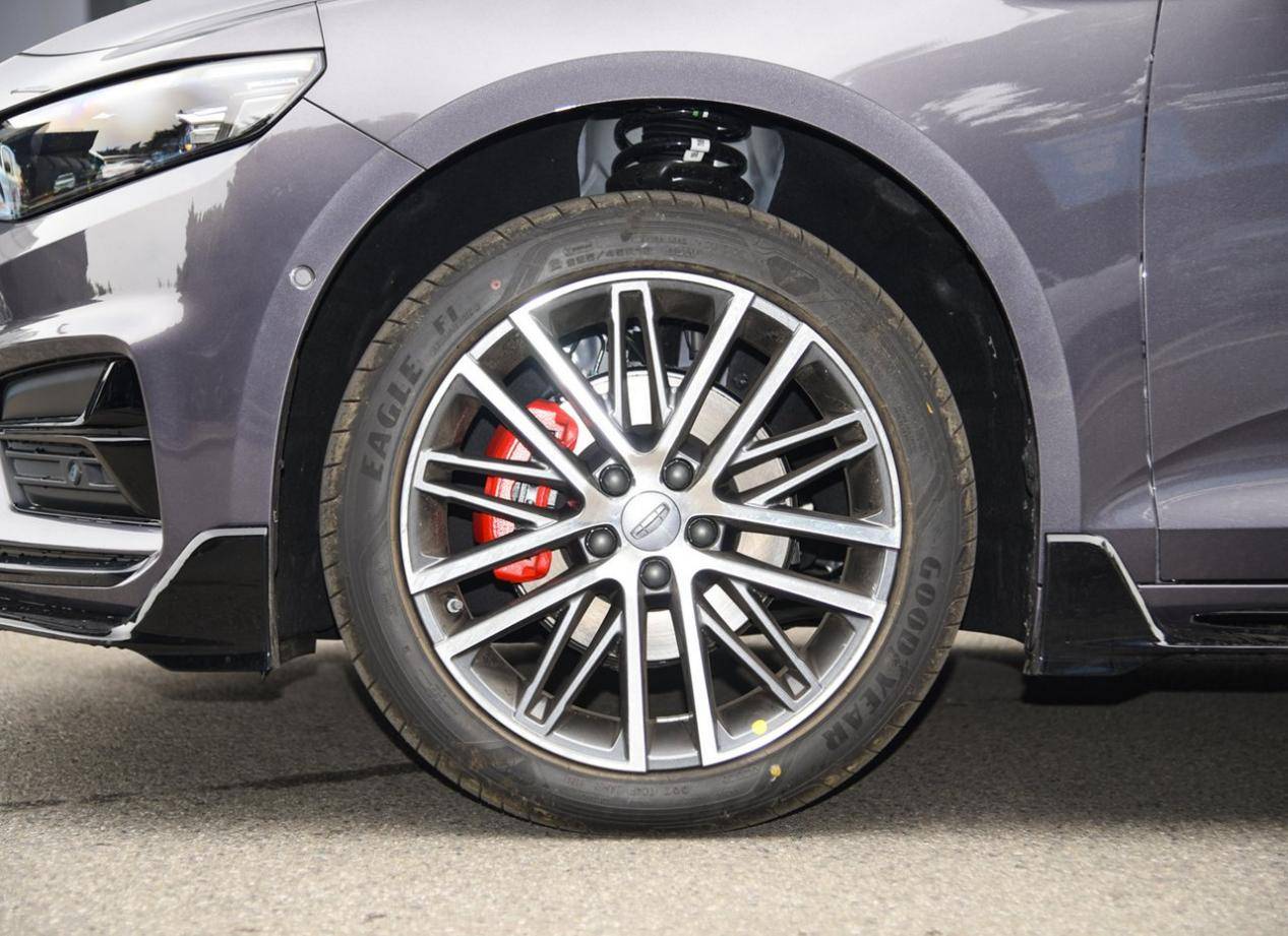 外觀方面,盾形格柵是吉利車型的標志,只是內部沒有使用漣漪設計,高端車型都采用了直瀑式裝飾,觀感上更加大氣,而非時尚。兩側燈組造型犀利,和格柵分隔開來,底部有著黑色大嘴,兩側進氣口內部的設計也比較個性化,整個車頭展現出一種扁平的風格,突出運動感。
