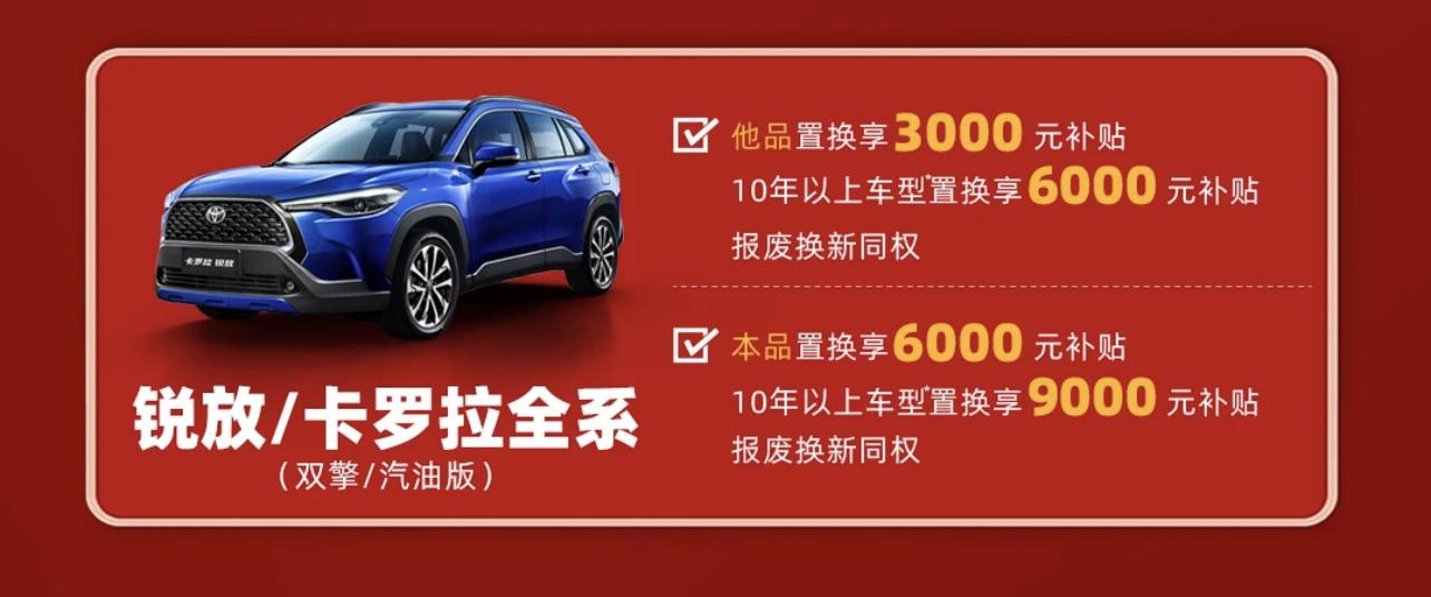 雖然官方指導價要接近13萬起售,不過加上終端優惠,實際一汽豐田卡羅拉銳放的起售價已經來到了10萬元以內,入門款車型只要9.98萬,雙擎版車型的價格也不足11萬。再加上一汽豐田還推出了“以舊換新”的購車政策,強勢補貼20億,就拿一汽豐田卡羅拉銳放來說,買車只要你有舊車置換,就可以獲得3000元的置換補貼。如果舊車是一汽豐田品牌車型,就可以再獲得3000優惠,如果你的舊車還是10年以上的“老車”,那么還可以再額外獲得3000元補貼,所以最高可以獲得9000元補貼。