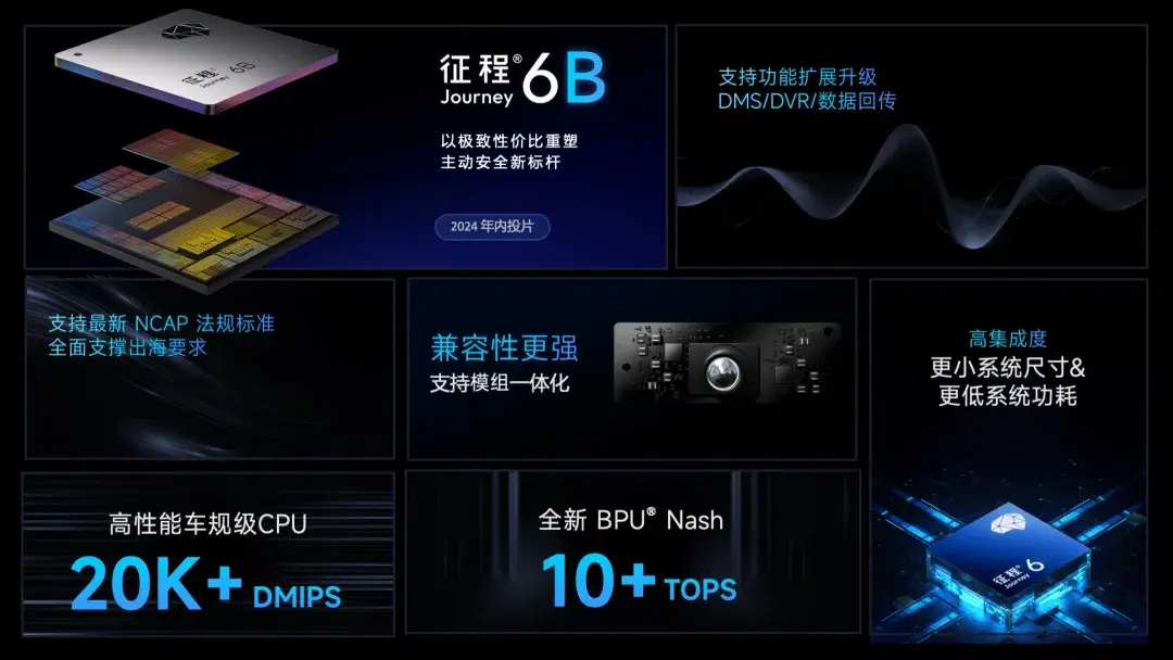 在高階智能駕駛領域,地平線推出了旗艦級產品征程6P,征程6P面向高階城區智駕市場,擁有高集成度、高算力、高效率、高處理能力、高接入能力以及高安全等六大產品制高點,是先進處理器技術的集大成者。