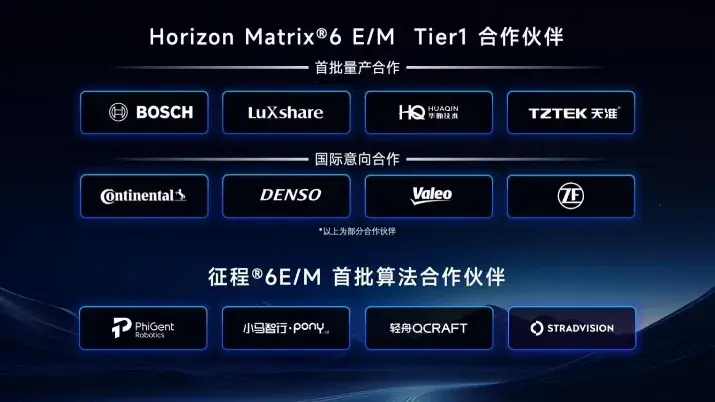 發布會現場地平線公布了征程6B已經獲得博世、電裝、四維圖新、福瑞泰克以及佑駕創新等多家國際與國內Tier1的意向合作。