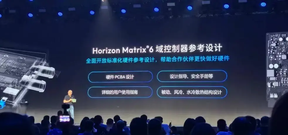地平線推出了征程6E/M SIP模式,把標配的系統組件和核心計算方案封裝在一個模塊中,降低系統的綜合成本,提升開發效率和靈活性,縮短開發周期。基于SIP模式,地平線提供了Matrix 6域控制器參考設計,提供硬件PCBA設計,設計指導和安全手冊,支持被動、風冷、水冷散熱結構設計。