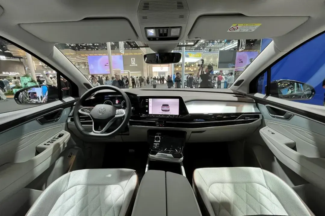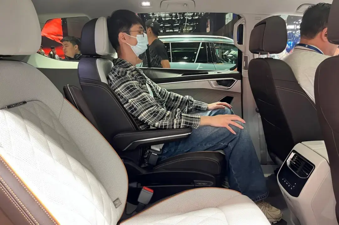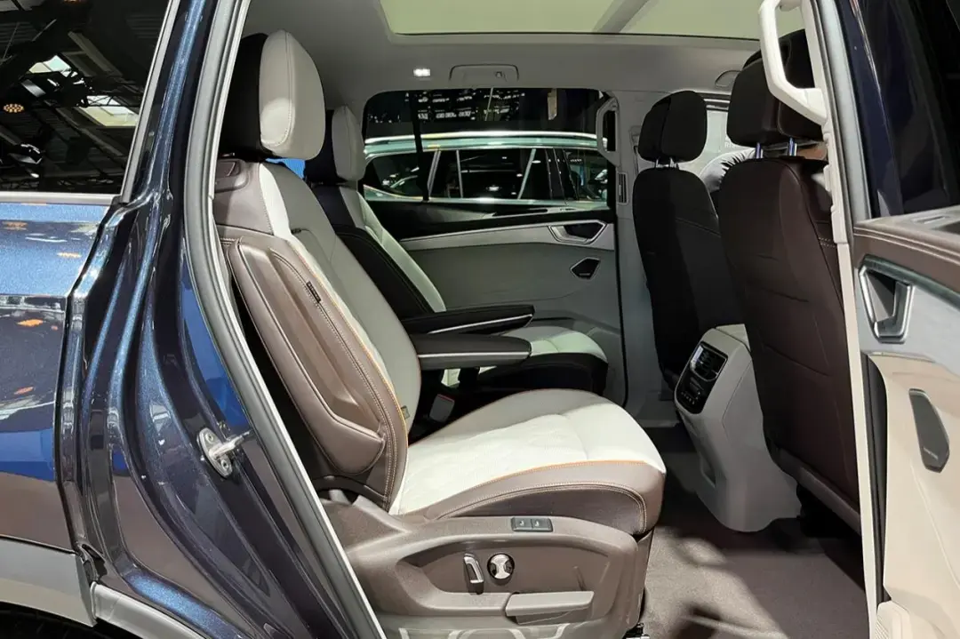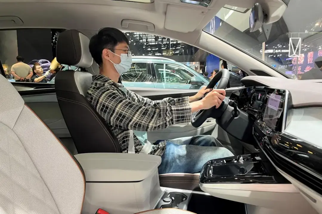 看到外部尺寸大家其實就已經開始想象攬境的內部空間了,但其實它空間會比我們想象的更好,因為攬境誕生于MQB平臺,采用了更適合家用的橫置布局,動力單元侵占的空間更少,留給乘坐的空間更大。在座椅布局方面,攬境提供6座和7座兩種選擇,這次在展臺上我們實拍的6座版本。