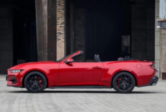 新車車身長度為4810mm,軸距達到了2720mm,車身側面線條簡潔,而且充滿力量感。值得一提的是,這一次福特Mustang在傳統的硬頂造型之外,還首次引入了軟頂敞篷版。