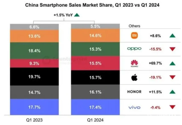 看樣子,華為正在不斷重新奪回失地,而蘋果曾經(jīng)搶占的市場份額也開始慢慢還回去了。