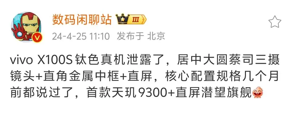 還有vivo X100系列的三款新機(jī)圖片上是vivo X100s首發(fā)搭載天璣9300+處理器,直屏,其他配置不變,還有X100SPro,也是天璣9300+,大頭是vivo X100Ultra,真正的影像旗艦,驍龍8gen3+兩億像素潛望長(zhǎng)焦,80瓦+5400毫安大電池組合