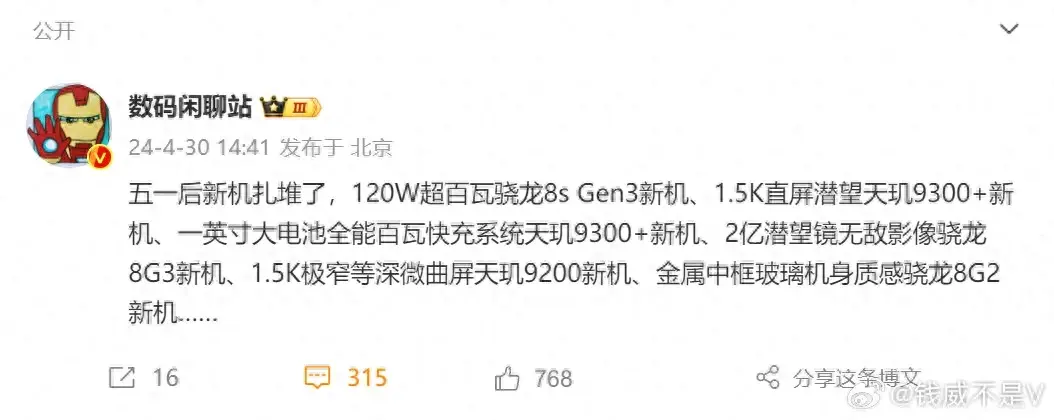 今天是四月的最后一天即將迎來五月,五月也有至少九款新機(jī)發(fā)布!有一英寸影像旗艦也有性價(jià)比性能旗艦!價(jià)位段從兩千到六千全覆蓋想換機(jī)的朋友可以考慮考慮