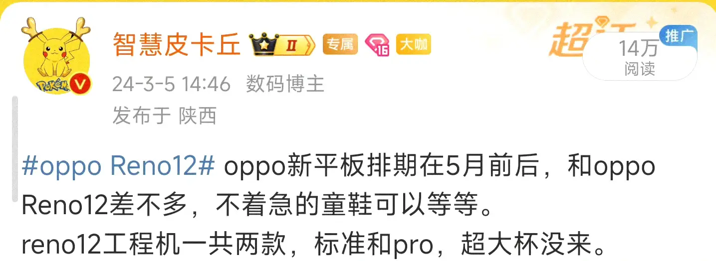 還有OPPOReno12系列兩款新機(jī),Pro搭載天璣9200,清庫(kù)存主打輕薄和自拍,沒有超大杯,和新平板一起來,標(biāo)準(zhǔn)版是直屏,Pro則是曲面屏