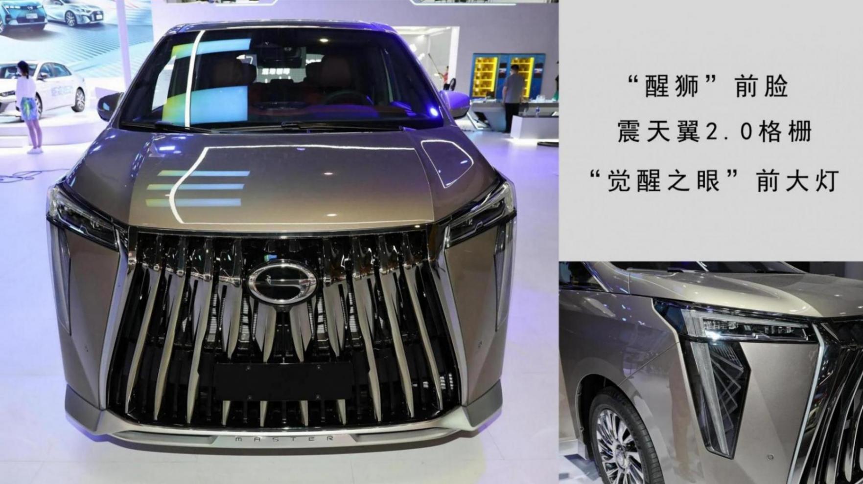 傳祺M8車身延續家族化風格設計,采用“醒獅”前臉設計,震天翼2.0格柵,從上而下擴散,每條飾條采用槍色調涂裝,增強了前臉的視覺沖擊感。前大燈采用“7”造型設計,官方稱為“覺醒之眼”前大燈(自適應遠近光ADB、流水迎賓、高度自動調節、延時關閉)前臉靈感來源于“東方雄獅”,營造出“雄獅怒目,天生威顏”的獨特造型,時尚華麗極具辨識度。