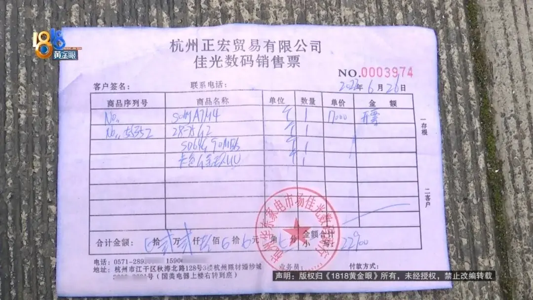 蔣女士購買了一臺索尼相機(jī)和配件