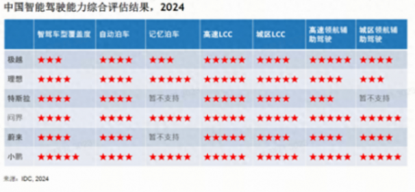 有意思的是,車展前夕,國際數據公司(IDC)也專門發布了一份《智能駕駛能力評估,2024》研究,通過實車測試,對各大車企的智能駕駛體驗效果進行了一次綜合評估。